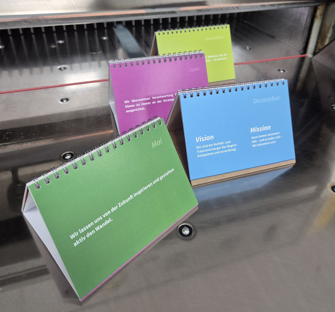 Für größere Auflagen nutzen wir natürlich den Offsetdruck und bieten auch Drucke in HKS- und Pantone-Sonderfarben an.