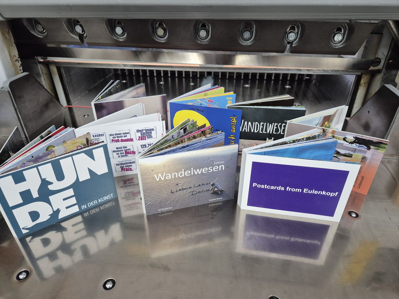 Wir drucken Ihre Postkartenmotive und fügen sie zu einem stabilen, verleimten Block zusammen. Die Menge einzelner Karten kann dabei frei gewählt werden.
