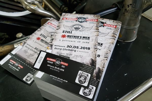 Ob Konzert, Messe, Theater, Vereinsfest oder Firmen-Event: Wir drucken Ihre Eintrittskarten exakt nach Ihren Vorgaben – im Wunschformat, auf stabilem Karton und mit verschiedenen Optionen zur Personalisierung.